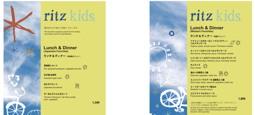 5歳の息子には、各レストラン共通のキッズメニューのご案内をいただきました。