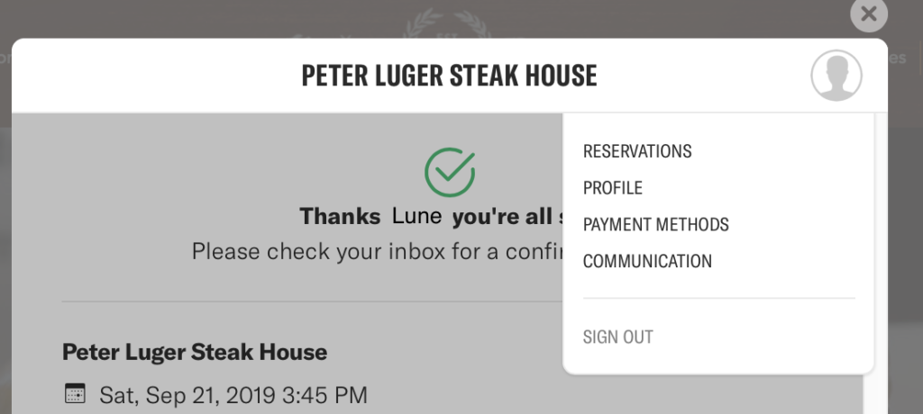 ピーター・ルーガー公式サイトからのみ、Resyを通しての予約が可能です。
